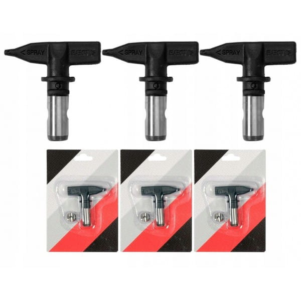 Zestaw 3 uniwersalnych dysz w najpopularniejszym rozmiarze 517 przeznaczonych do malowania natryskowego za pomocą agregatu malarskiego.