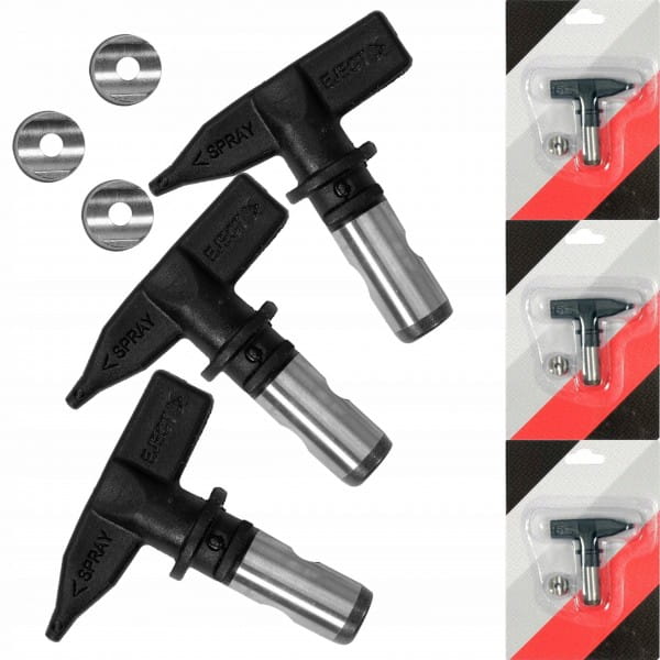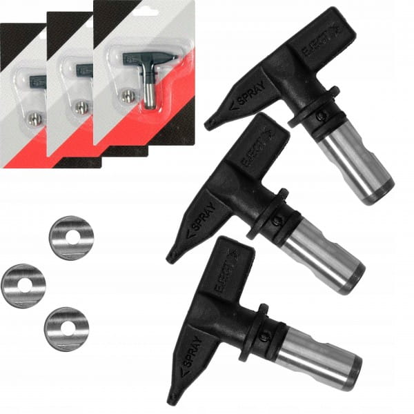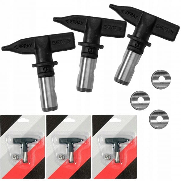Zestaw 3 uniwersalnych dysz w najpopularniejszym rozmiarze 517 przeznaczonych do malowania natryskowego za pomocą agregatu malarskiego.
