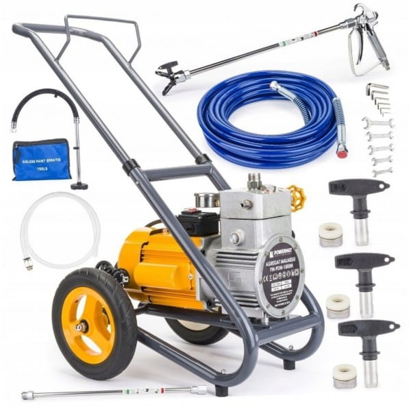 AGREGAT MALARSKI PISTOLET HYDRODYNAMICZNY 1500W + DYSZE +WĄŻ +PRZEDŁUŻKA