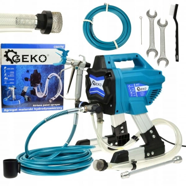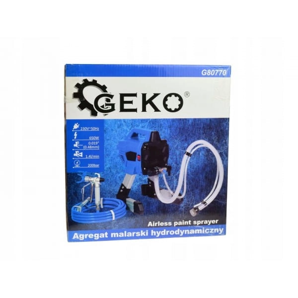 Agregat malarski hydrodynamiczny GEKO DP-X6. Mobilny agregat to idealna opcja dla majsterkowiczów, właścicieli domów i osób stosujących farby od niskiej do średniej lepkości. Bez problemu poradzi sobie z malowaniem wnętrz, płotów, tarasów, itp. Do stosowania z materiałami malarskimi typu: farby na bazie wody, farby na bazie oleju, farby lateksowe, akrylowe, emalie, lakiery.