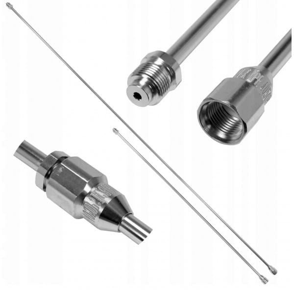 Zestaw 2 przedłużek o różnych rozmiarach przeznaczonych do stosowania z agregatami malarskimi.