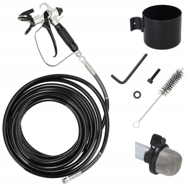 - W zestawie wysokiej jakości pistolet natryskowy z wężem wysokociśnieniowym o długości 7,5 metra