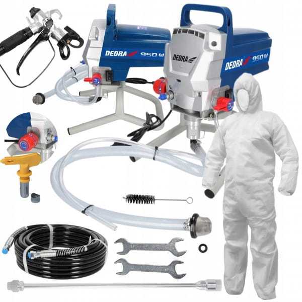 DEDRA AGREGAT MALARSKI WĄŻ 15M 950W 2 DYSZE PRZEDŁUŻKA 50CM DO MALOWANIA