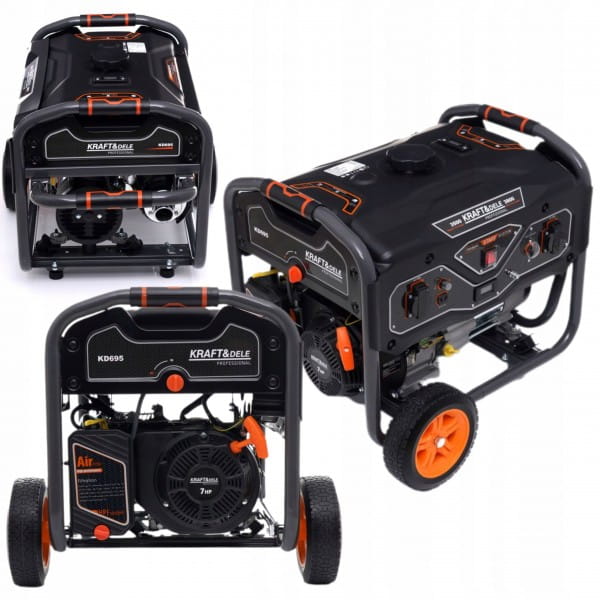 Przenośny agregat prądotwórczy jednofazowy o oznaczeniu KD695 marki Kraft&Dele przeznaczony jest do generowania prądu zmiennego 220V-230V za pomocą silnika spalinowego OHV 4-suwowego.