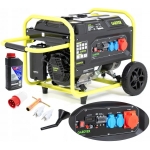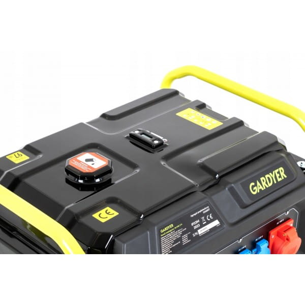 W zestawie znajdują się trzy gniazda: jedno 3-fazowe oraz dwa 230 V AC 1-fazowe, co pozwala na podłączenie różnorodnych urządzeń i narzędzi. Zbiornik paliwa o pojemności 25 l zapewnia nieprzerwany czas pracy na poziomie 10 godzin przy 50% obciążenia, co jest szczególnie ważne w przypadku pracy w terenie bez dostępu do zasilania sieciowego. Agregat Gardyer G5600T został wyposażony w rozrusznik ręczny, który zapewnia szybki i niezawodny start urządzenia w każdych warunkach.