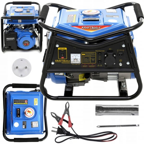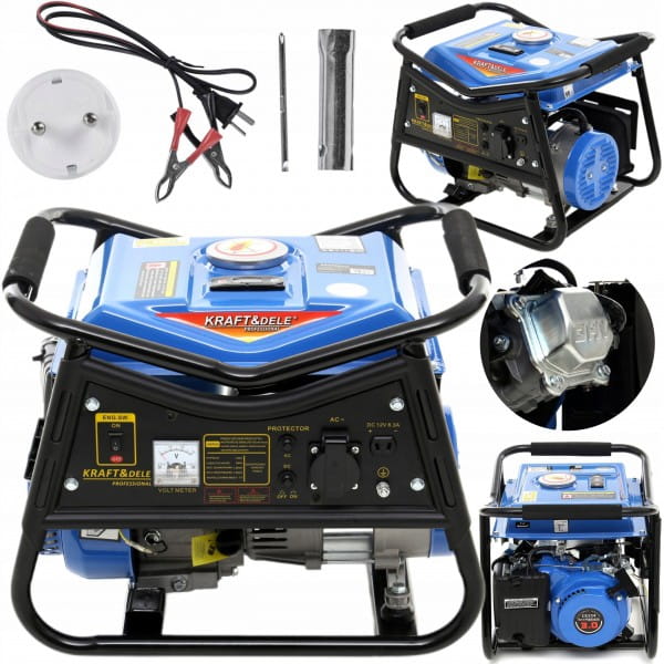 Przenośny agregat prądotwórczy jednofazowy o oznaczeniu KD140 marki Kraft&Dele przeznaczony jest do generowania prądu zmiennego 220V-230V za pomocą silnika spalinowego japońskiej konstrukcji OHV 4-suwowego o mocy 3KM oraz mocy maksymalnej prądnicy 1500W.