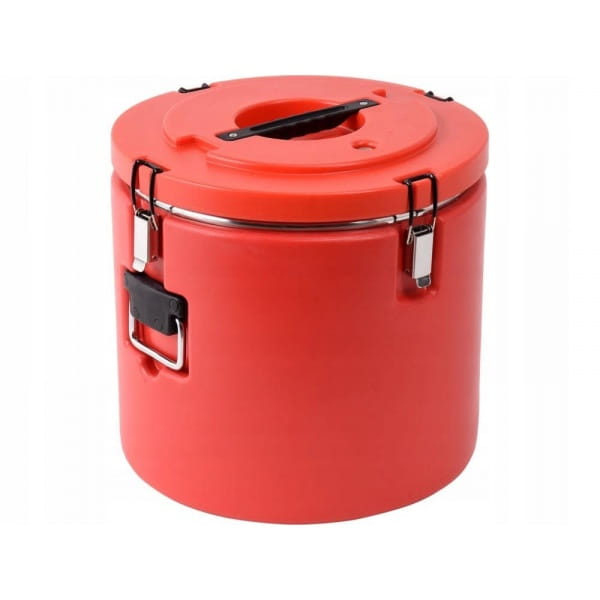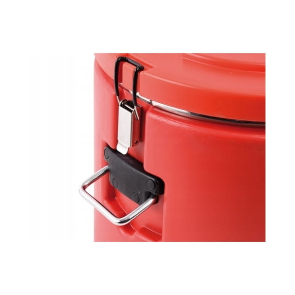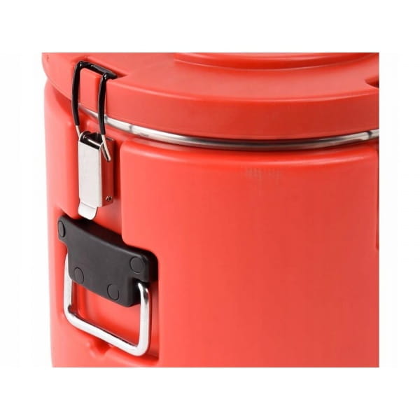 Pojemnik termoizolacyjny wyposażony jest w dwa wykonane ze stali nierdzewnej, masywne uchwyty ułatwiające transport oraz cztery zatrzaski zamykające pokrywę. Wysoka jakość i wytrzymałość tych elementów, gwarantuje wieloletnie bezawaryjne użytkowanie.