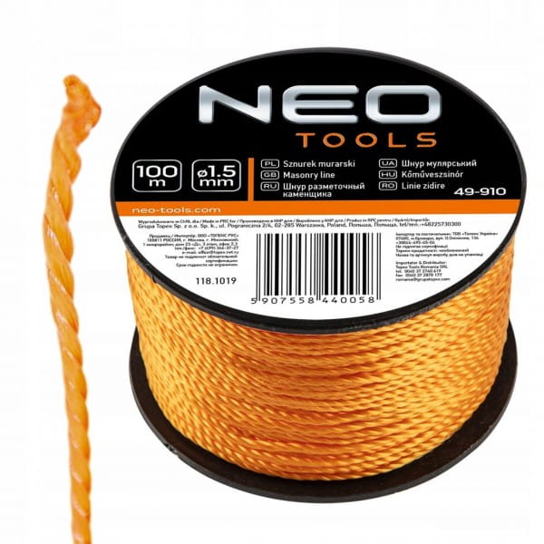 NEO SZNUREK MURARSKI BUDOWLANY 1,5 MM X 100 M TRASERSKI NA SZPULI 49-910