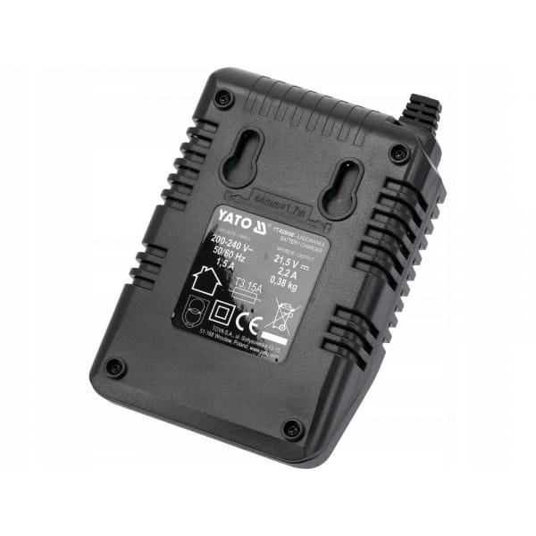 Podstawowa ładowarka wszystkich akulmulatorów systemu 18 V YATO. Wbudowany system testowania sprawności akumulatora oraz temperatury dba o żywotność baterii. Nie podejmuje ładowania, kiedy ogniwa są zbyt rozgrzane. W przypadku baterii przechowywanej w ujemnej temperaturze rozpoczyna ładowanie, gdy bateria osiagnie temperaturę powyżej +5 stopni Celsjusza.