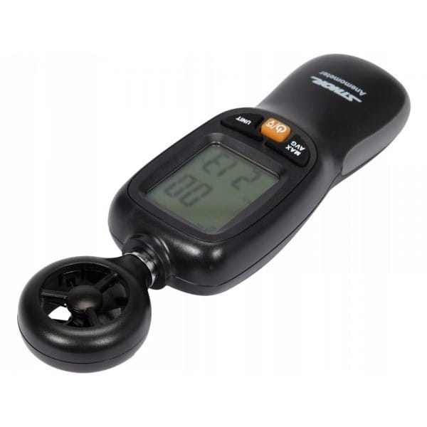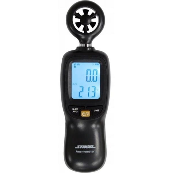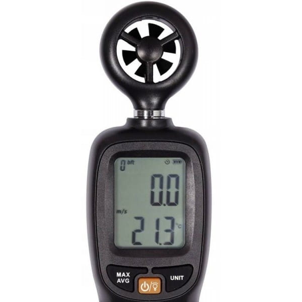 Miernik prędkości wiatru (anemometr, wiatromierz), to urządzenie do rejestrowania prędkości wiatru w pięciu najpopularniejszych jednostkach oraz w skali Beauforta. Przy jego pomocy skontrolujemy prędkość nawiewu w systemach klimatyzacji, efektywność wentylacji, czy chociażby prędkość wiatru podczas hobbistycznych przelotów dronem, lub modelami RC. Oprócz prędkości wiatru miernik umożliwia kontrolę temperatury otoczenia.