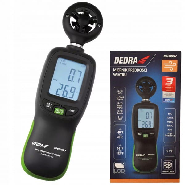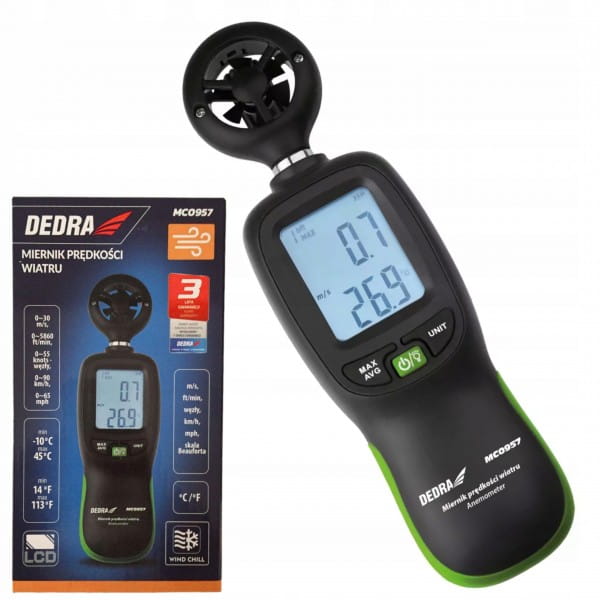 DEDRA MIERNIK PRĘDKOŚCI MONITOROWANIE WIATRU WIATROMIERZ ANEMOMETR MC0957