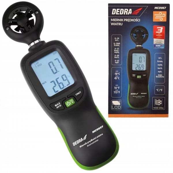 Cechy miernika prędkości wiatru DEDRA MC0957: