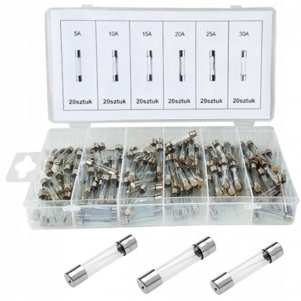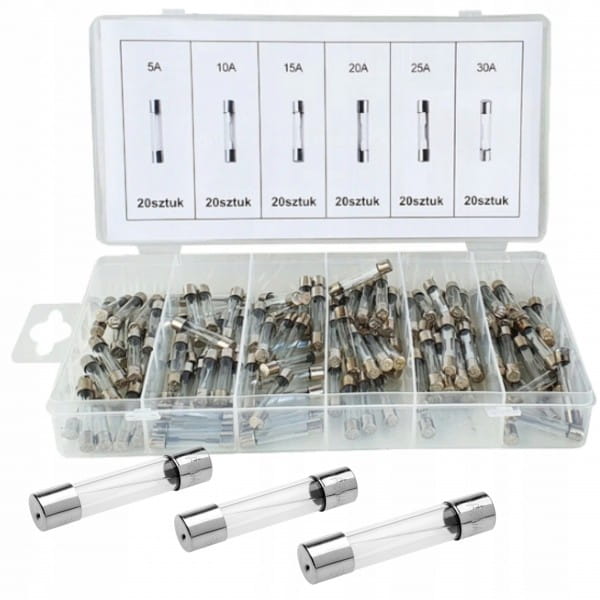 ZESTAW SZKLANE BEZPIECZNIKI 120 SZT. 5-30A