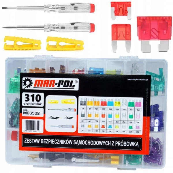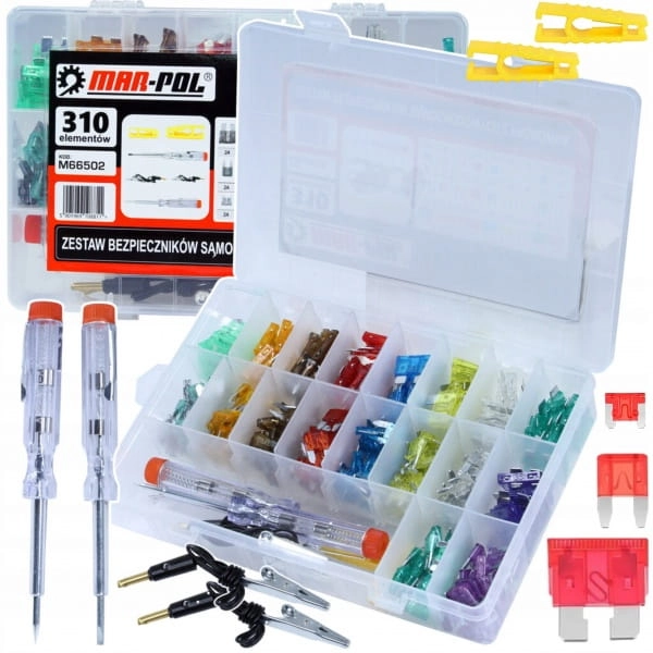 ZESTAW BEZPIECZNIKÓW SAMOCHODOWYCH Z PRÓBÓWKĄ 310EL. MAR-POL M66502