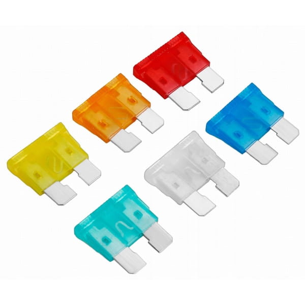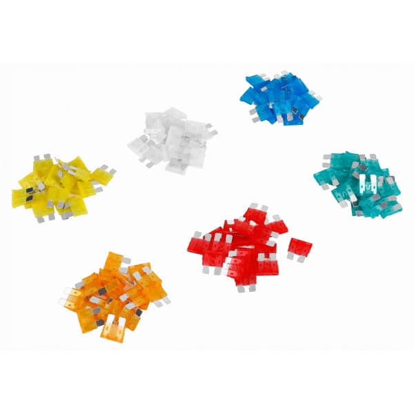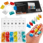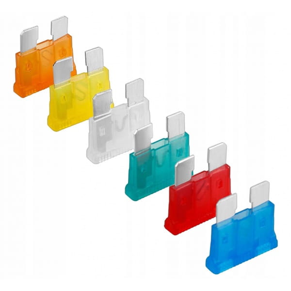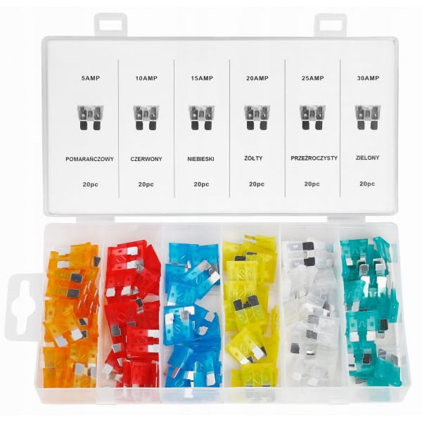 Zestaw bezpieczników samochodowych zawierający 120 elementów o różnej mocy. Bezpieczniki choć są niewielkich rozmiarów pełnia ważną rolę i są odpowiedzialne za prawidłową pracę urządzeń elektrycznych w samochodzie.