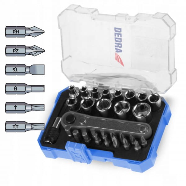DEDRA ZESTAW KOŃCÓWEK WKRĘTAKOWYCH 30EL 1/4" 25MM BITY TORX 18A11S030