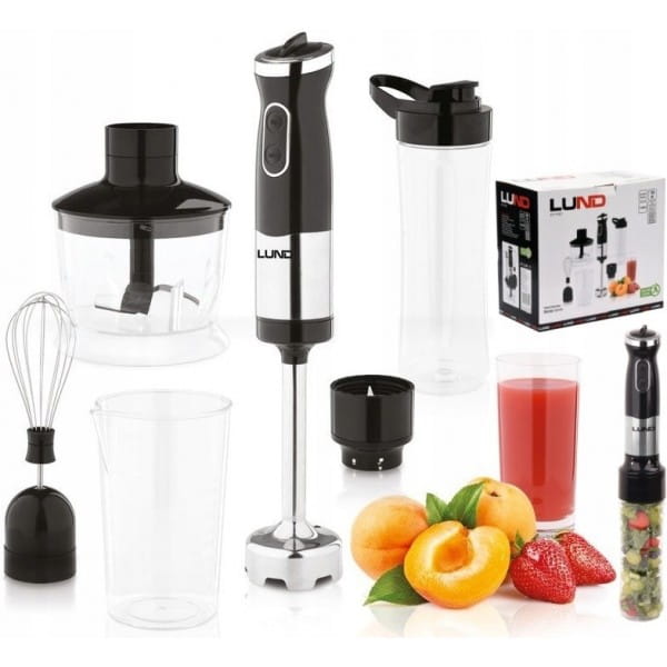 Wielofunkcyjny blender ręczny Lund o mocy maksymalnej 1100W i płynnej regulacji prędkości gwarantuje szybką i wydajną pracę oraz ułatwia codzienne prace kuchenne. Umożliwia szybkie rozdrobnienie produktów, blendowanie, ubijanie i przygotowanie smoothie.