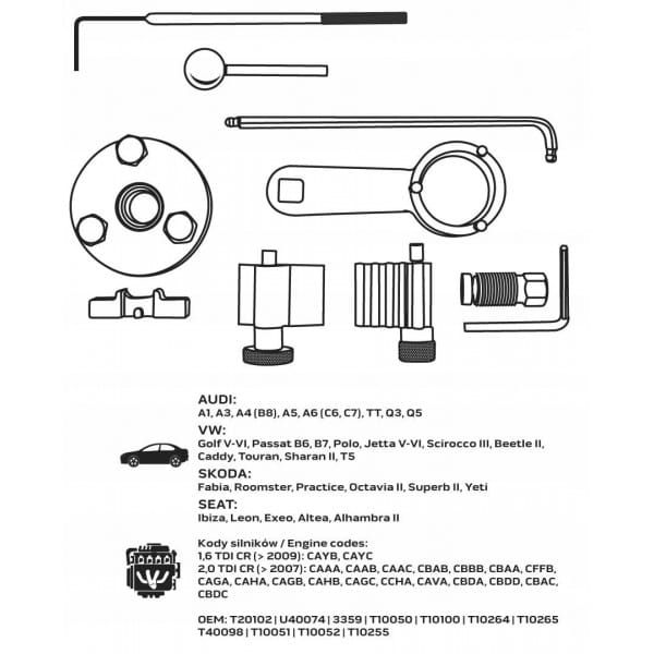 - Kody silników: 1,6 TDI CR (> 2009): CAYB, CAYC 2,0 TDI CR (> 2007): CAAA, CAAB, CAAC, CBAB, CBBB, CBAA, CFFB, CAGA, CAHA, CAGB, CAHB, CAGC, CCHA, CAVA, CBDA, CBDD, CBAC, CBDC