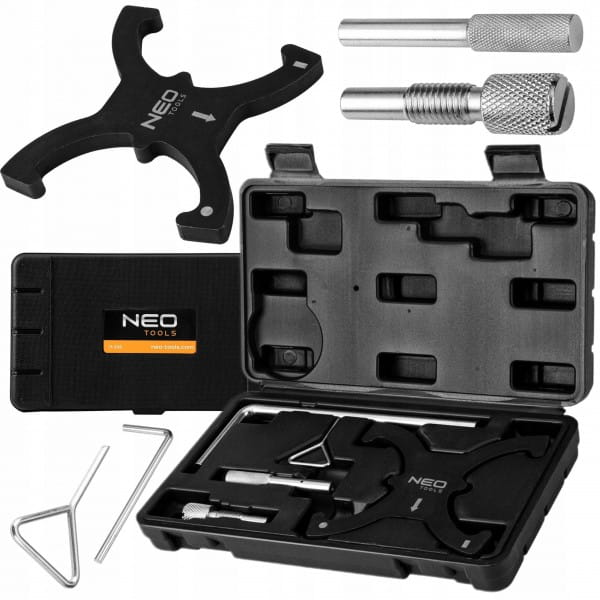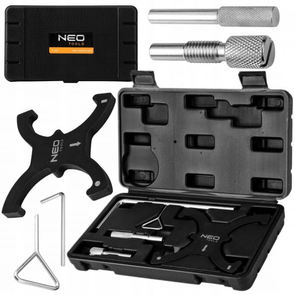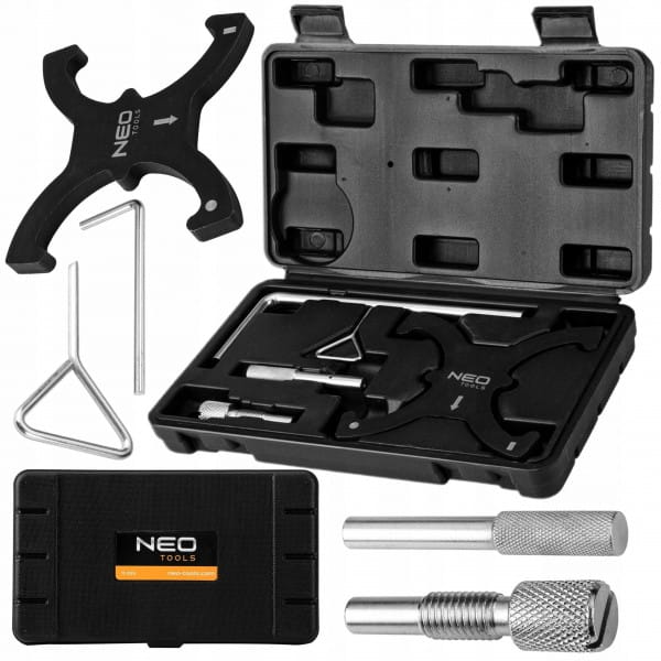 Zestaw blokad rozrządu do silników benzynowych i diesla Ford Focus 11-335, NEO TOOLS zestaw do blokowania kół rozrządu w samochodach Ford Focus. W skład zestawu wchodzą elementy do blokady rozrządu w silnikach benzynowych i diesla. Zapewnia podstawowe narzędzia do ustawiania i blokowania silnika.
