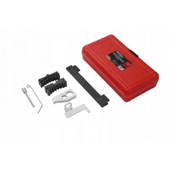 Zawiera przyrząd do ustawiania GMP, przyrząd do wałków rozrządu, trzpień do rolki napinacza i śrubę blokującą dostępny w poręcznej walizce.