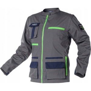Bluza robocza PREMIUM NEO wykonana w 100% z bawełny to dedykowane do wszelkich prac zawodowych jak i domowych. Została wykonane z tkaniny ripstop, która blokuje dalsze rozdzieranie ubrania, gdy zostanie ono uszkodzone mechanicznie. Bluzę dzięki odpinanym rękawom można zmienić w kamizelkę. Bluza ma stójkę, specjalne zakładki na plecach oraz regulację obwodu nadgarstka dzięki czemu zapewnia swobodę ruchów. Aby pomieścić różne narzędzia bluza została zaopatrzona w wielofunkcyjne kieszenie zapisane na suwaki i napy. Odblaskowe elementy bluzy zapewniają widoczność i bezpieczeństwo o każdej porze dnia oraz w różnych warunkach pogodowych. Posiadają certyfikat CE na zgodność z normą EN ISO 13688:2013.