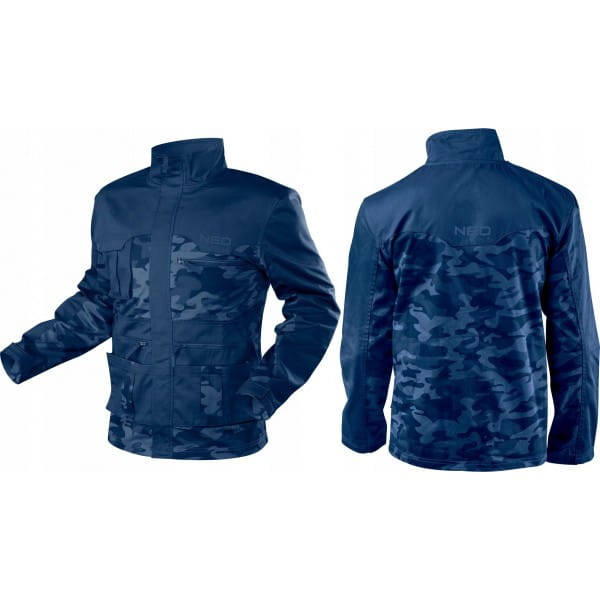 Bluza robocza CAMO Navy została zaprojektowana w Polsce przez technologów odzieży NEO, z myślą o każdym szczególe i zachowaniu stylu. Bluzę wyróżnia nowoczesny, dopasowany do sylwetki krój oraz unikalny wzór w odcieniach niebieskiego. Jakość ubrania roboczego świetnie sprawdzi się jako strój codzienny. Cechy charakterystyczne: unikalny wzór w odcieniach niebieskiego, wszywka identyfikacyjna, profilowane łokcie, wielofunkcyjne kieszenie zapinane na suwaki, rzepy, plisa zakrywająca suwak, regulacja obwodu, certyfikat CE na zgodność z normą EN ISO 13688:2013.
