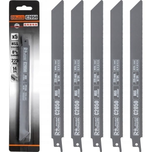 Zestaw 5 szt. brzeszczotów HSS-Co Bimetal o długości 225 mm przeznaczonych do pił szablastych.