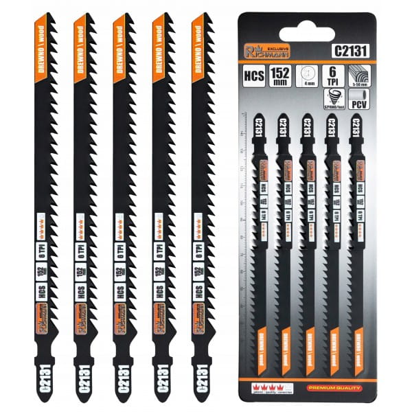 Zestaw 5 szt. brzeszczotów HCS o długość 152 mm przeznaczonych do wyrzynarek.