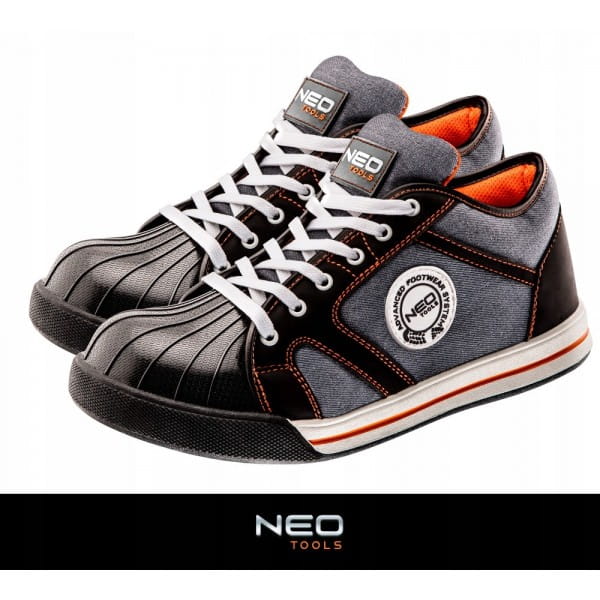 Półbuty robocze NEO to podstawowa ochrona podczas pracy. Cholewka wykonana z przewiewnego materiału. Antypoślizgowa podeszwa wykonana z pianki EVA pokrytej gumą zapewnia wysoki komfort i skuteczne amortyzowanie wstrząsów, gwarantuje bezpieczeństwo i wygodę. Tył buta wzmocniony tworzywem oraz metalowy nosek chronią przed urazami mechanicznymi. Dzięki miękkiemu wykończeniu wewnątrz buta komfort pracy pozostaje na wysokim poziomie. Oznaczenie CE to gwarancja bezpieczeństwa, dowodzi, że produkt spełnia wszystkie unijne wymagania. Marka NEO spełnia oczekiwania profesjonalistów