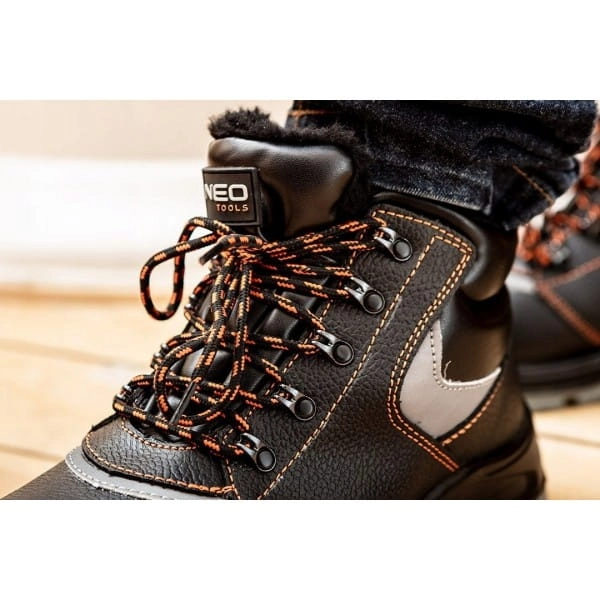 Skórzane, ocieplane trzewiki robocze to produkt należący do kategorii obuwia bezpiecznego S3 SRC wg normy EN ISO 20345. Trzewiki NEO przeznaczone są do ochrony stóp użytkownika przed urazami. Wyposażone są w stalowe podnoski zaprojektowane tak, aby zapewniały ochronę przed uderzeniami z energią równą 200J i przed ściskaniem równym 15kN, antypoślizgową podeszwę odporną na: ścieranie (z systemem absorbującym wstrząsy), oleje, benzynę i inne rozpuszczalniki organiczne, odporną na poślizg na podłożu ceramicznym pokrytym roztworem laurylosiarczanu sodu (SLS) i na podłożu ze stali pokrytym glicerolem. Obuwie posiada zintegrowaną wkładkę antyprzebiciową, zabezpieczającą przed przebiciem od podłoża oraz wkładkę antyelektrostatyczną. Ich wodoodporność podnosi komfort pracy w trudnych warunkach a ocieplenie ekologicznym futrem umożliwia prace w niskich temperaturach. Wyrób został poddany ocenie zgodności i spełnia standardy obowiązujące na terenie Unii Europejskiej. Marka NEO spełnia oczekiwania profesjonalistów.