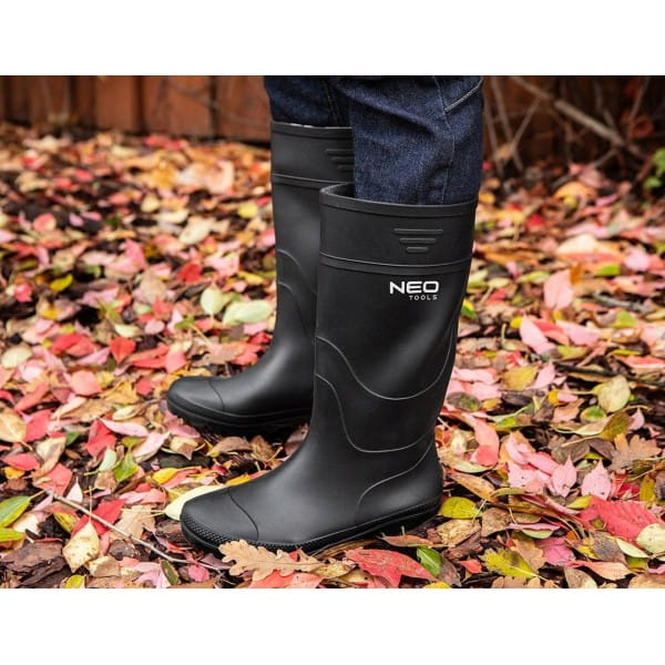 Kalosze PVC, 82-902 NEO TOOLS to doskonałe obuwie dla każdego, kto pracuje na nierównym podłożu oraz grząskiej, mokrej ziemi. Wykonane w całości z wysokiej jakości PVC, te kalosze są nie tylko wodoodporne, ale także łatwe do utrzymania w czystości, co jest kluczowe w pracach ogrodowych, leśnych czy podczas wędkowania.