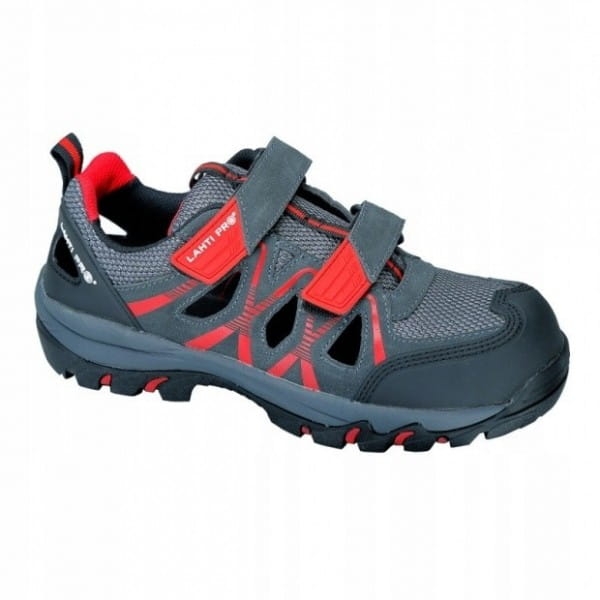 Sandały męskie z podnoskiem kompozytowym Lahti Pro L30603. Najnowsza kolekcja butów roboczych dla Panów. Wierz buta wykonany ze skóry zamszowej z dodatkiem dzianiny siatkowej dla lepszej wentylacji stopy. Gumowana podeszwa chroniąca przed poślizgiem na podłożu stalowym oraz ceramicznym oraz podnosek kompozytowy chroniący stopę przed uderzeniami. But spełnia właściwości elektrostatyczne. Obuwie posiada certyfikat CE oraz normę ISO 20345 oraz jest w drugiej kategorii środków ochrony indywidualnej.