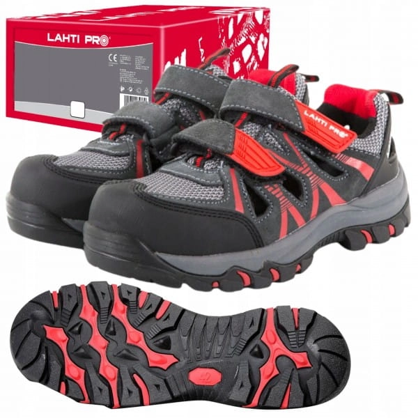Sandały męskie z podnoskiem kompozytowym Lahti Pro L30603. Najnowsza kolekcja butów roboczych dla Panów. Wierz buta wykonany ze skóry zamszowej z dodatkiem dzianiny siatkowej dla lepszej wentylacji stopy. Gumowana podeszwa chroniąca przed poślizgiem na podłożu stalowym oraz ceramicznym oraz podnosek kompozytowy chroniący stopę przed uderzeniami. But spełnia właściwości elektrostatyczne. Obuwie posiada certyfikat CE oraz normę ISO 20345 oraz jest w drugiej kategorii środków ochrony indywidualnej.
