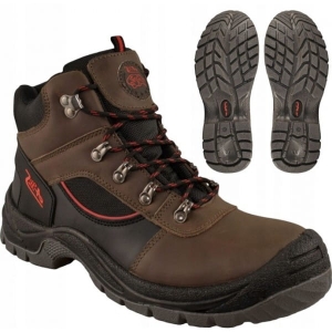 Trzewik ochronny o atrakcyjnym nowoczesnym wzornictwie, wykonany ze skóry licowej Crazy Horse o grubości 2,0-2,2 mm oraz impregnowanej tkaniny Oxford, wyposażony w podnosek stalowy, wytrzymały na uderzenia z energią 200 J oraz zgniecenia do 15 kN. Kategoria ochrony: S1.