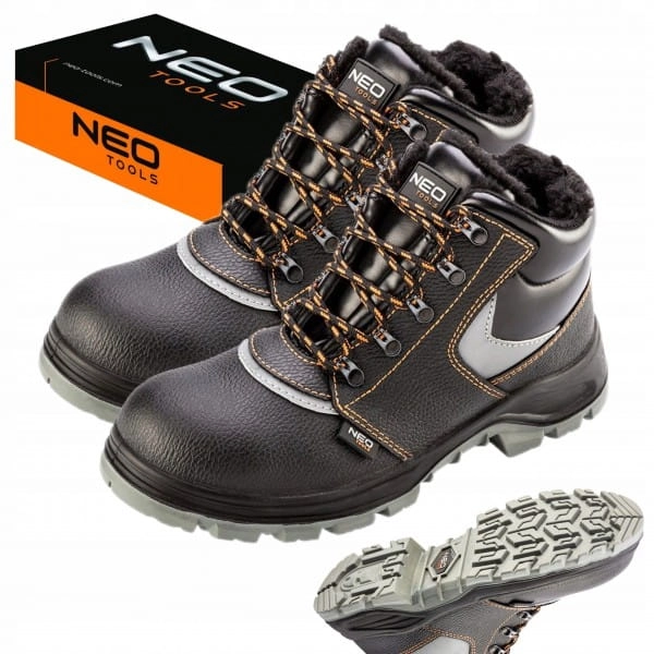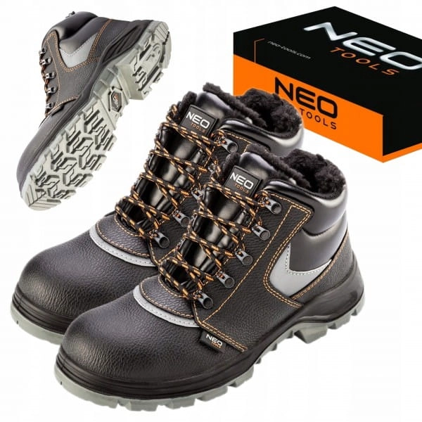 Skórzane, ocieplane trzewiki robocze to produkt należący do kategorii obuwia bezpiecznego S3 SRC wg normy EN ISO 20345. Trzewiki NEO przeznaczone są do ochrony stóp użytkownika przed urazami. Wyposażone są w stalowe podnoski zaprojektowane tak, aby zapewniały ochronę przed uderzeniami z energią równą 200J i przed ściskaniem równym 15kN, antypoślizgową podeszwę odporną na: ścieranie (z systemem absorbującym wstrząsy), oleje, benzynę i inne rozpuszczalniki organiczne, odporną na poślizg na podłożu ceramicznym pokrytym roztworem laurylosiarczanu sodu (SLS) i na podłożu ze stali pokrytym glicerolem. Obuwie posiada zintegrowaną wkładkę antyprzebiciową, zabezpieczającą przed przebiciem od podłoża oraz wkładkę antyelektrostatyczną. Ich wodoodporność podnosi komfort pracy w trudnych warunkach a ocieplenie ekologicznym futrem umożliwia prace w niskich temperaturach. Wyrób został poddany ocenie zgodności i spełnia standardy obowiązujące na terenie Unii Europejskiej. Marka NEO spełnia oczekiwania profesjonalistów.