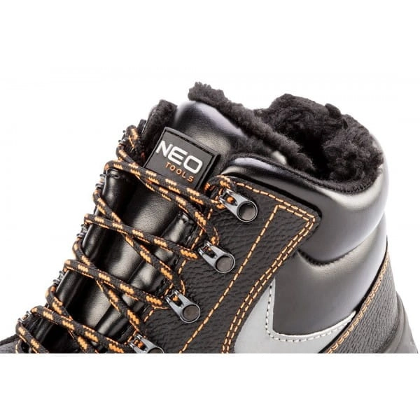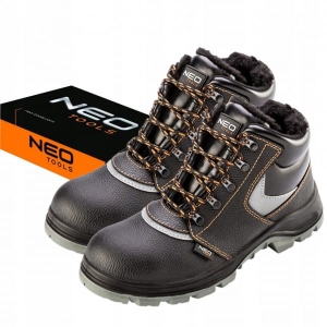 Skórzane, ocieplane trzewiki robocze to produkt należący do kategorii obuwia bezpiecznego S3 SRC wg normy EN ISO 20345. Trzewiki NEO przeznaczone są do ochrony stóp użytkownika przed urazami. Wyposażone są w stalowe podnoski zaprojektowane tak, aby zapewniały ochronę przed uderzeniami z energią równą 200J i przed ściskaniem równym 15kN, antypoślizgową podeszwę odporną na: ścieranie (z systemem absorbującym wstrząsy), oleje, benzynę i inne rozpuszczalniki organiczne, odporną na poślizg na podłożu ceramicznym pokrytym roztworem laurylosiarczanu sodu (SLS) i na podłożu ze stali pokrytym glicerolem. Obuwie posiada zintegrowaną wkładkę antyprzebiciową, zabezpieczającą przed przebiciem od podłoża oraz wkładkę antyelektrostatyczną. Ich wodoodporność podnosi komfort pracy w trudnych warunkach a ocieplenie ekologicznym futrem umożliwia prace w niskich temperaturach. Wyrób został poddany ocenie zgodności i spełnia standardy obowiązujące na terenie Unii Europejskiej. Marka NEO spełnia oczekiwania profesjonalistów.