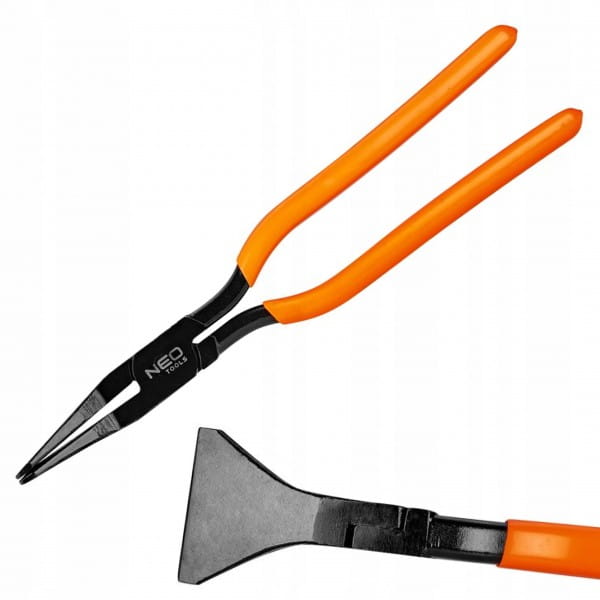 Cęgi dekarskie proste 180 NEO (nr ref. 31-070) o długości 275 mm i szerokości szczęk 60 mm. Wykonane z wysokiej jakości stali chromowo-molibdenowej o twardości na poziomie 28-32 HRc, co zapewnia długą żywotność narzędzia. Pokrycie rękojeści okładziną PCV uniemożliwia wyślizgiwanie się z rąk, co poprawia komfort pracy. Marka NEO spełnia oczekiwania profesjonalistów.