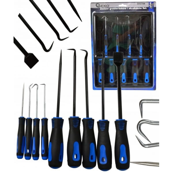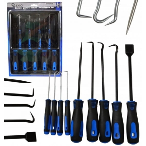 Narzędzia przeznaczone do demontażu oringów, simeringów oraz wszelkiego rodzaju uszczelek. Doskonale sprawdzi się podczas oczyszczania elementów metalowych z róznego rodzaju uszczelniaczy. Rączki narzędzi wykonane zostały z wysokiej jakości antypoślizgowego tworzywa sztucznego zapewniającego pewny chwyt i komfort podczas pracy.