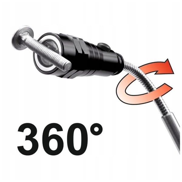 Teleskopowe ramię o długości maksymalnej 56,5 cm zakończone jest główką z magnesem do unoszenia metalowych przedmiotów takich, jak śruby, nakrętki, podkładki, itp. z trudno dostępnych miejsc.
