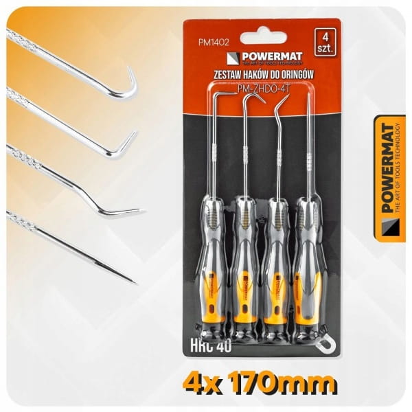 ZESTAW HACZYKÓW Z RĘKOJEŚCIĄ 4EL. HAKÓW SKROBAKÓW DO ORINGÓW USZCZELEK HAK