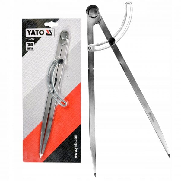 Cyrkiel wykonany ze stali węglowej , ramiona o przekroju prostokątnym końcówki ostrzone i hartowane . Posiada blokowaną prowadnicę nastawczą. Długość ramion 300 mm .