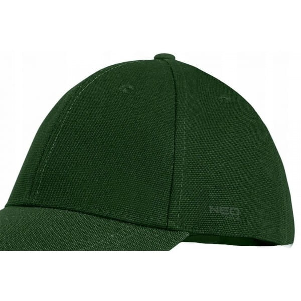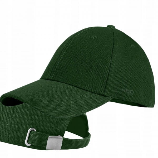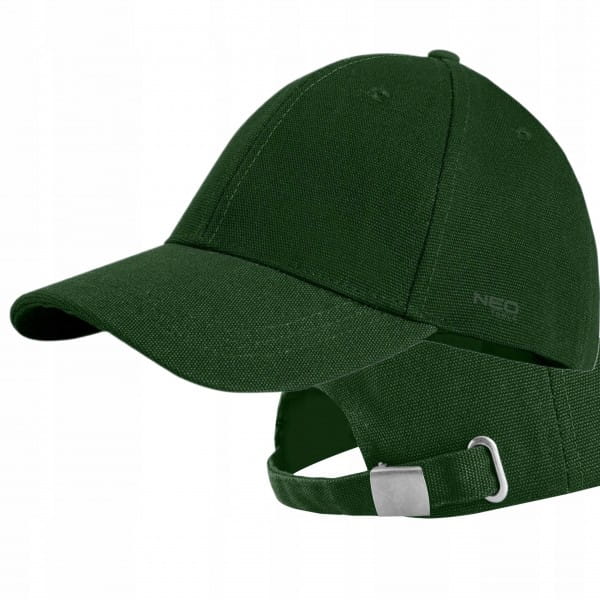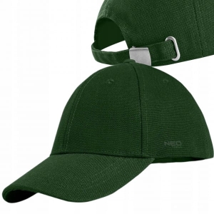 Czapka z daszkiem, zielona 81-637 marki NEO TOOLS to praktyczna czapka z daszkiem w kolorze zielonym, charakteryzująca się drukowanym logiem z boku oraz regulacją obwodu na klamerkę z tyłu czapki. Wykonana w 100% z wysokiej jakości bawełny. Solidny, usztywniony daszek dobrze chroni oczy przed intensywnymi promieniami słonecznymi. Czapka NEO TOOLS do noszenia na co dzień jak i do wykorzystania w pracy.
