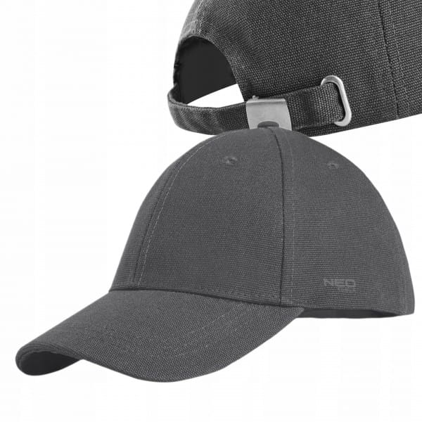 Czapka z daszkiem, szara 81-635 marki NEO TOOLS to praktyczna czapka z daszkiem w kolorze szarym, charakteryzująca się drukowanym logiem z boku oraz regulacją obwodu na klamerkę z tyłu czapki. Wykonana w 100% z wysokiej jakości bawełny. Solidny, usztywniony daszek dobrze chroni oczy przed intensywnymi promieniami słonecznymi. Czapka NEO TOOLS do noszenia na co dzień jak i do wykorzystania w pracy.