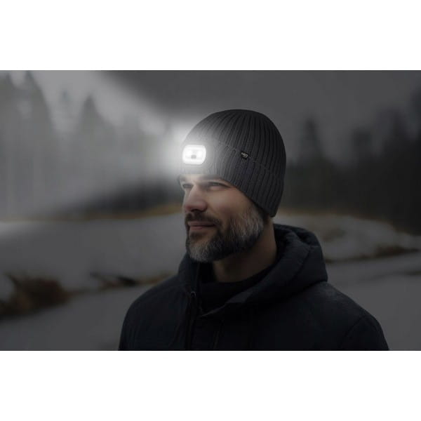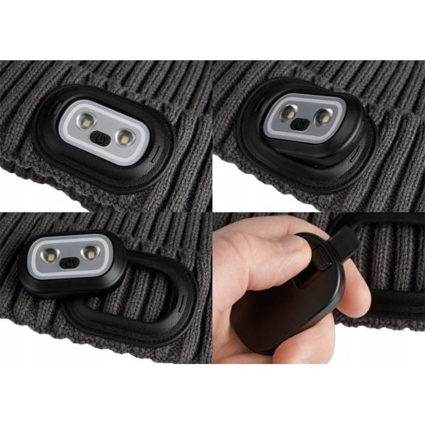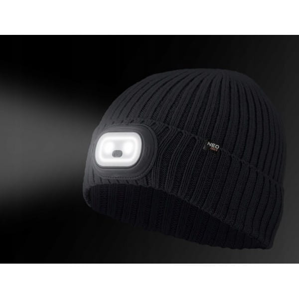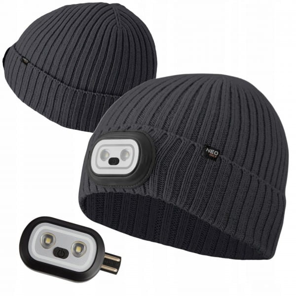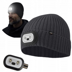 NEO CZAPKA ROBOCZA Z LATARKĄ LED RGB CZOŁÓWKA 4 TRYBY ZIMOWA GRAFIT 81-627