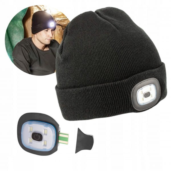 HOEGERT CZAPKA ROBOCZA ZIMOWA OCIEPLANA Z LATARKĄ CZOŁOWĄ LED USB HT5K486