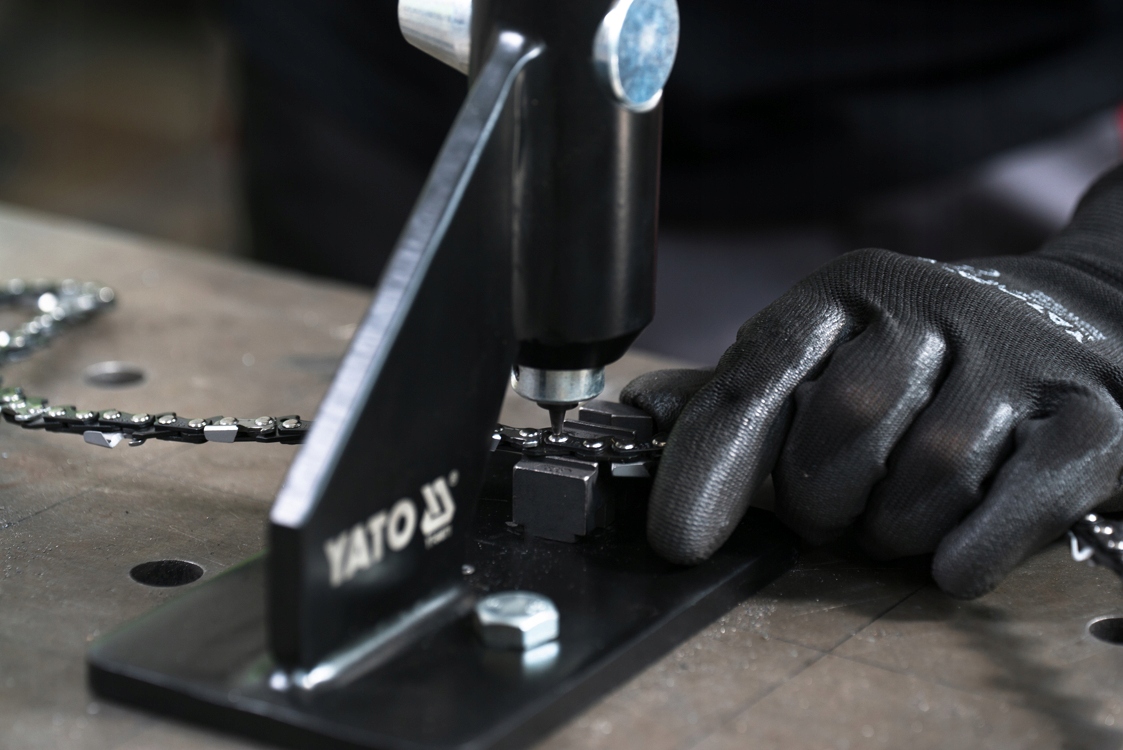 Rozkuwarka YATO przeznaczona jest do roznitowywania łańcuchów tnących pilarek łańcuchowych. Dzięki zastosowaniu wymiennych końcówek możliwe jest optymalne dopasowanie do łańcuchów o różnej grubości i podziałce. Umożliwiają rozkuwanie łańcuchów na bębnach YATO, a także serwisowanie łańcuchów YATO oraz innych producentów.