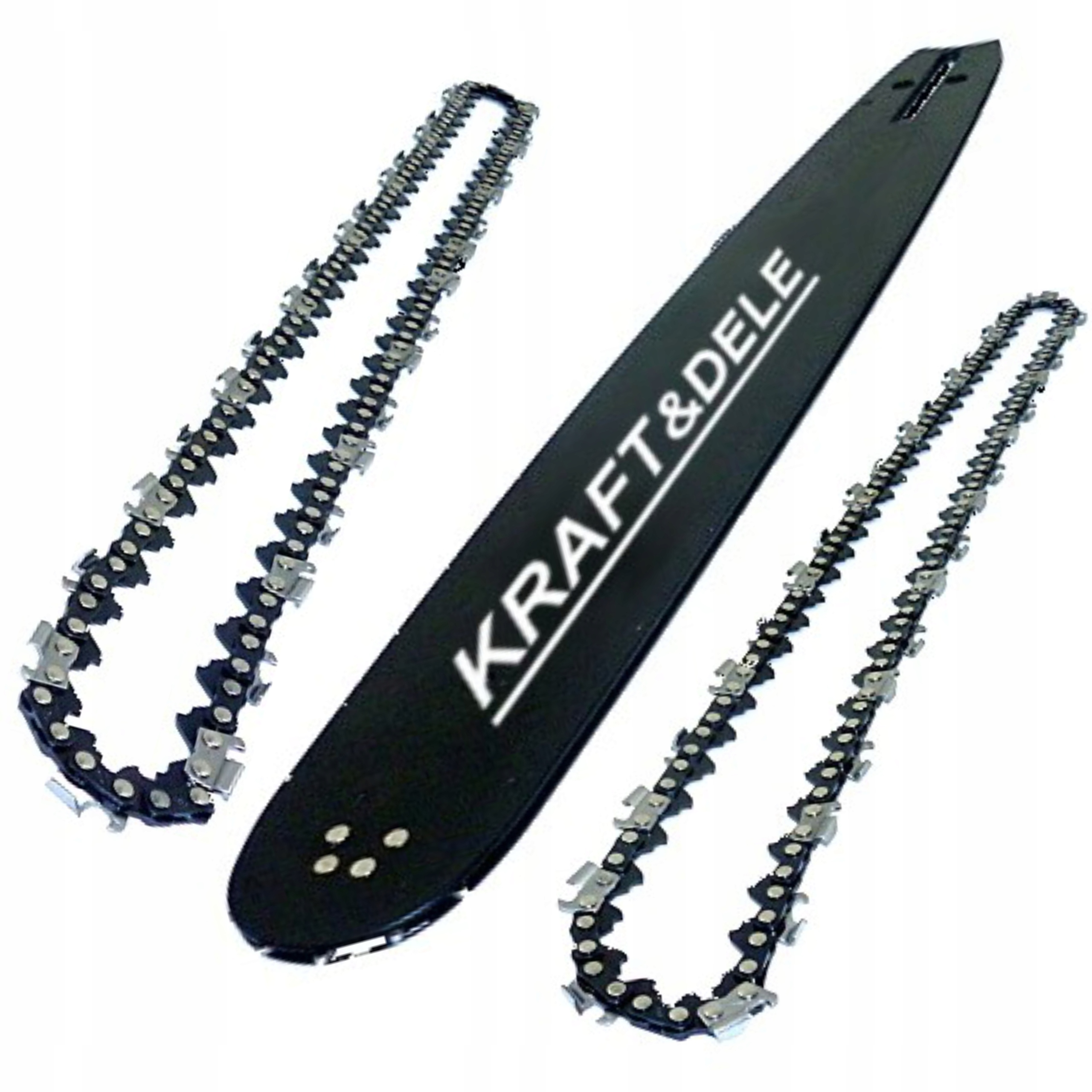 Zestaw składający się z prowadnicy oraz dwóch łańcuchów. Wykonany z najwyższej jakości materiałów. Prowadnica przystosowana jest do pilarek wielu marek, między innymi Stihl, Makita, Kraft&Dele oraz wielu innych pracujących z łańcuchami 3/8" i szerokością ogniwa prowadzącego 1,3mm.
