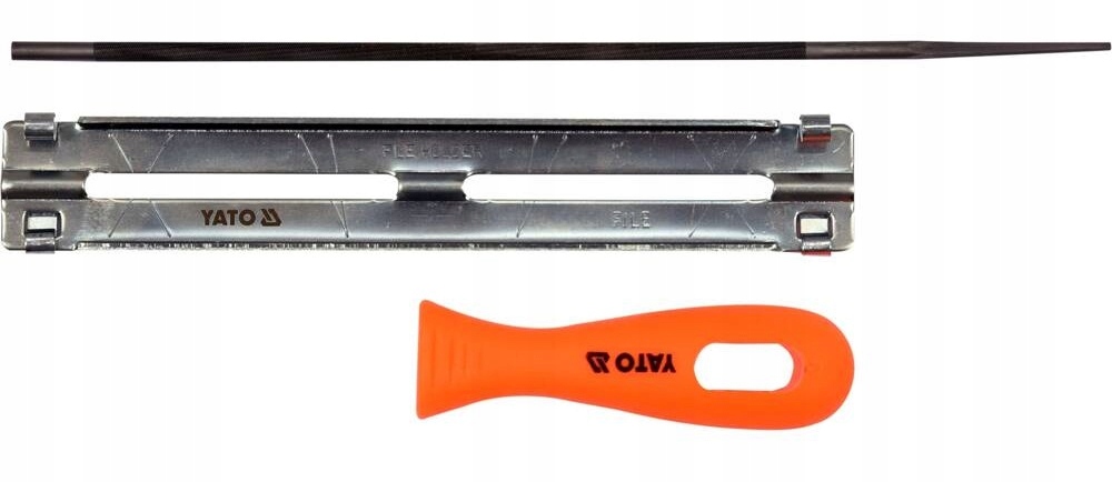 Prowadniki z pilnikiem służące do ostrzenia łańcuchów tnących pilarek.