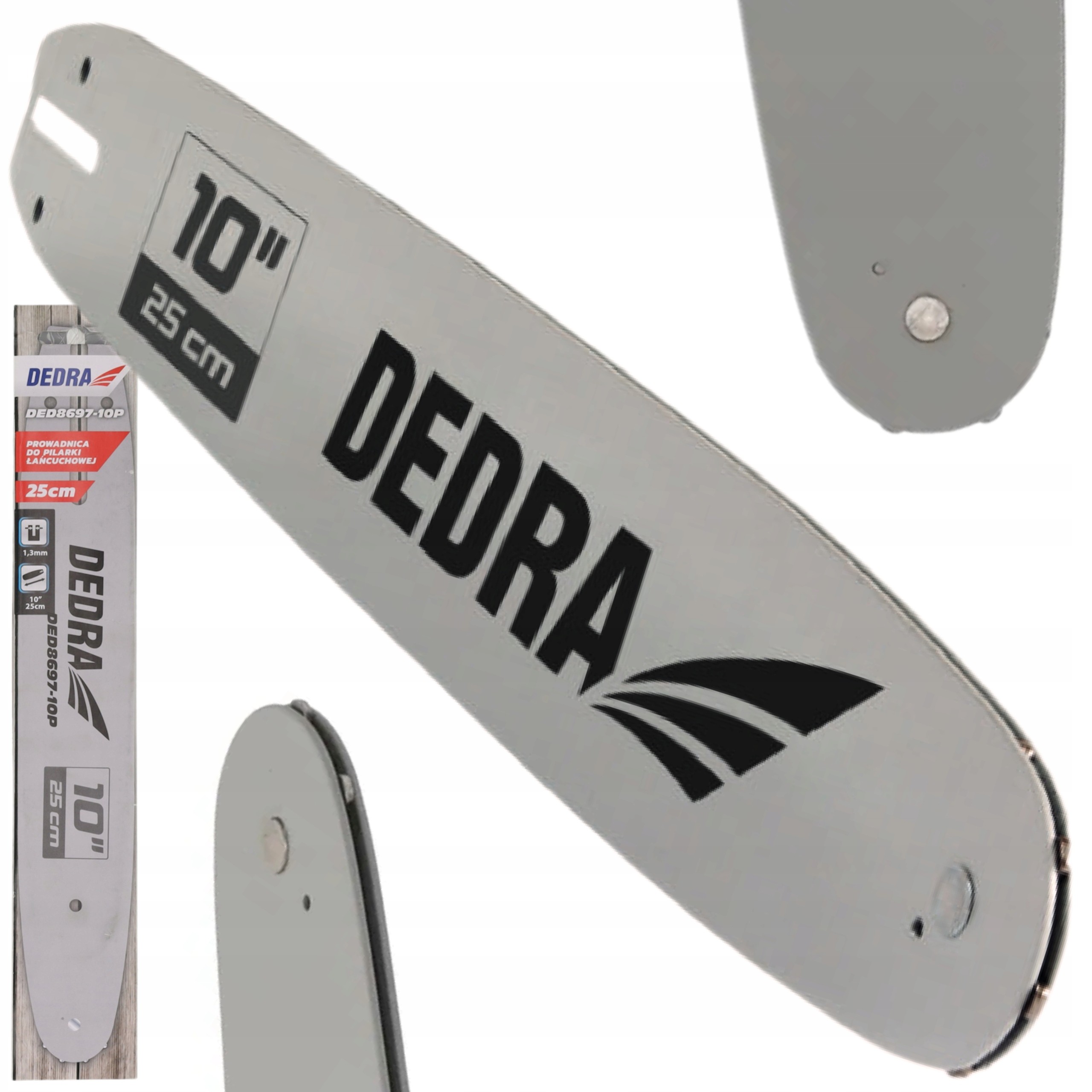 Prowadnica do pilarek łańcuchowych przeznaczonych do cięcia drewna. Prowadnica o długości 10" 25cm, jest kompatybilna z większością pilarek oraz łańcuchów na rynku. Szerokość rowka 1,3mm. Rekomendowana do produktów DEDRA