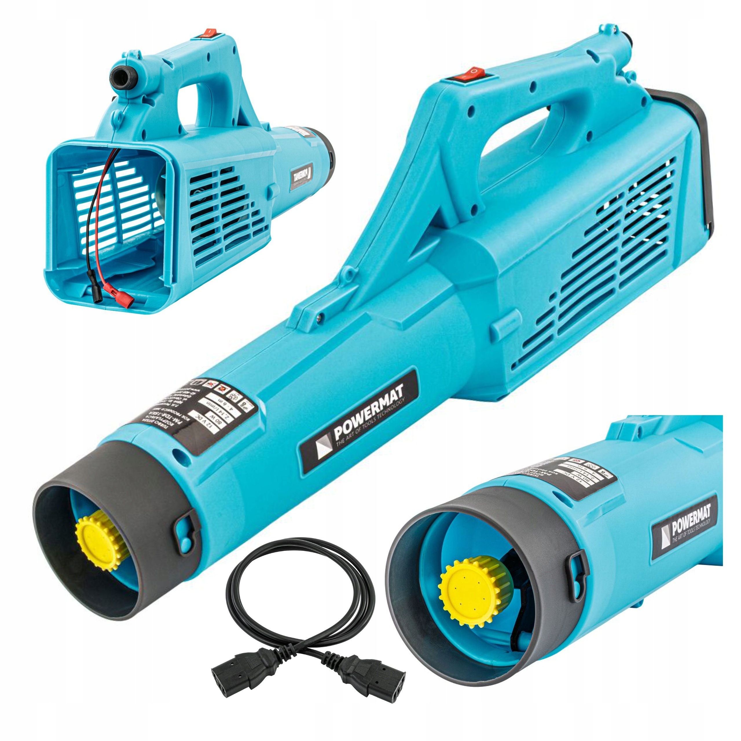 Urządzenie zasilane jest bezpośrednio z akumulatora opryskiwacza dzięki dołączonemu przewodowi zasilającemu. Umożliwia także pracę jako niezależna dmuchawa po zastosowaniu akumulatora.